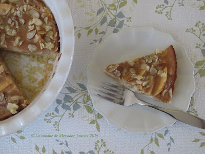 4. Verser cette préparation crémeuse sur les pommes, égaliser délicatement la surface à l’aide du dos d’une cuillère, puis recouvrir de tranches d’amande. Enfourner et cuire entre 35 et 40 minutes, ou jusqu’à ce la surface soit figée et qu’un cure-dents inséré au centre de la préparation en ressorte propre.